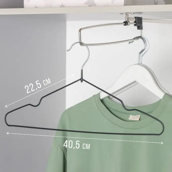 Вешалка-плечики с антискользящим покрытием – незаменимая вещь в каждом шкафу. Специальное покрытие вешалки не даёт одежде соскальзывать. Классическая форма с перекладиной для брюк и выемкой для одежды с бретельками позволяет использовать вешалку практически для любой одежды. Тонкие металлические плечики не займут много места в вашем шкафу и помогут разместить всю одежду.