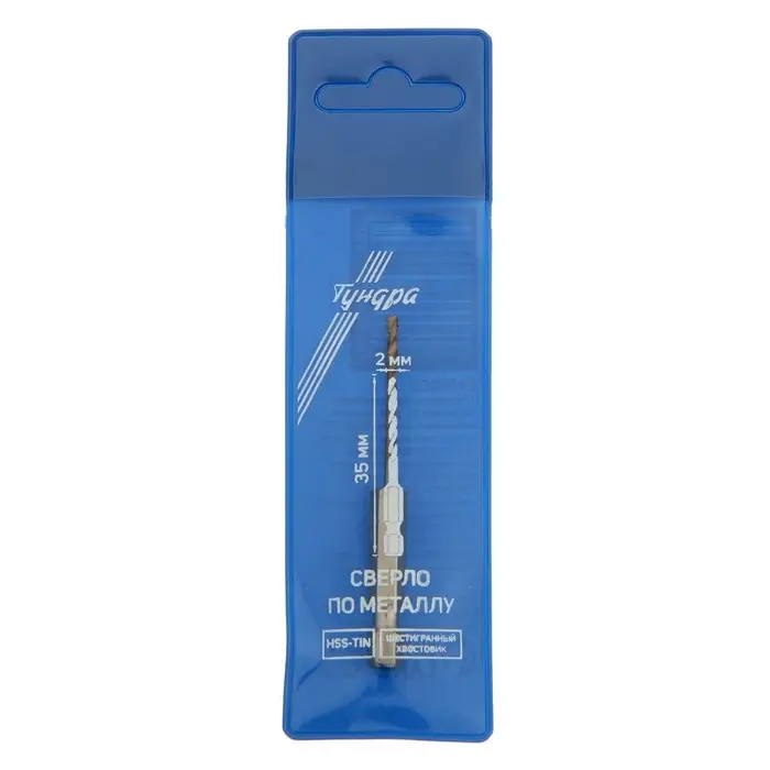 Сверло по металлу ТУНДРА, HSS-Tin, шестигранный хвостовик, 2×35 мм