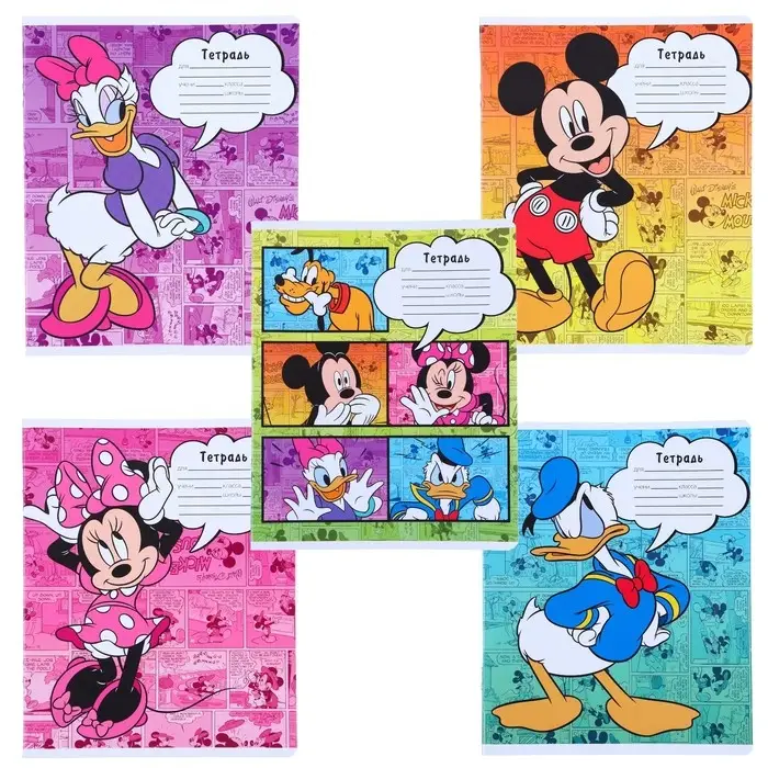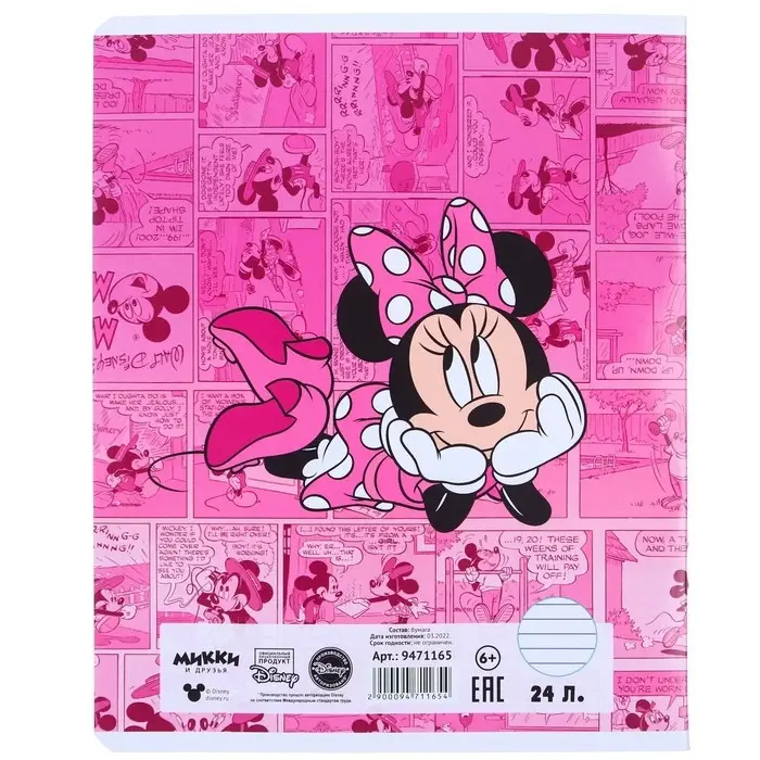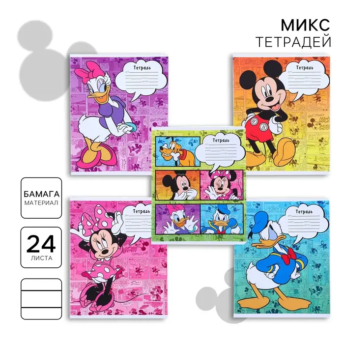 Тетрадь в линейку 24 листа, 5 видов МИКС, обложка мелованная бумага, «Минни Маус»