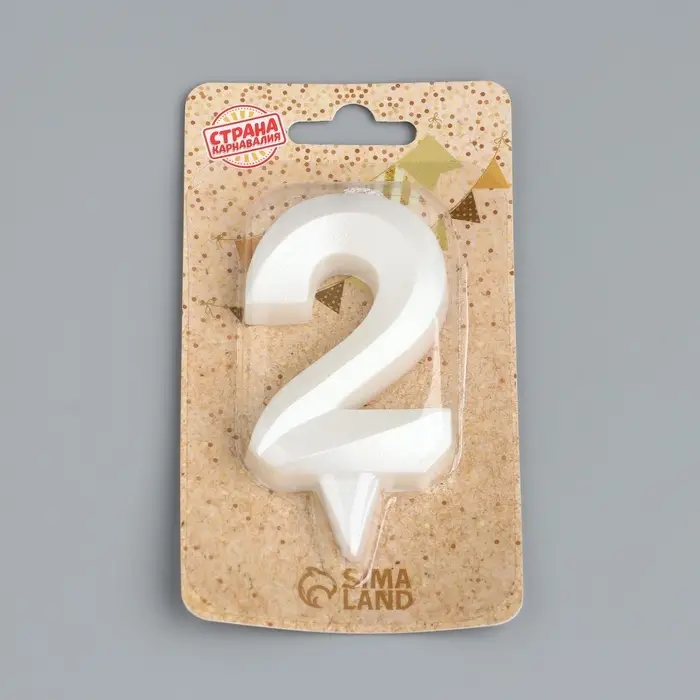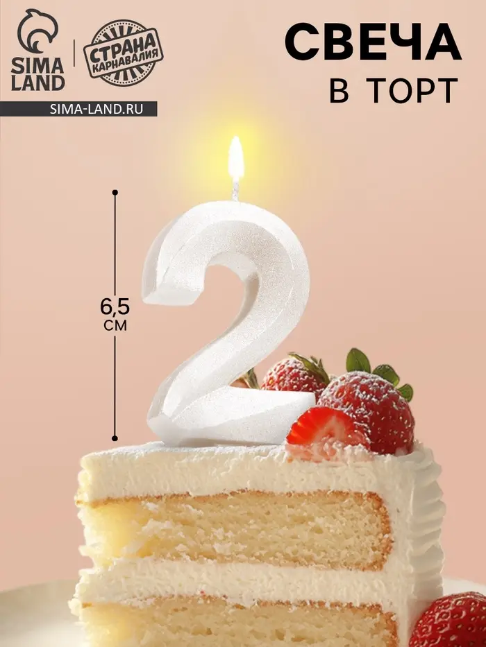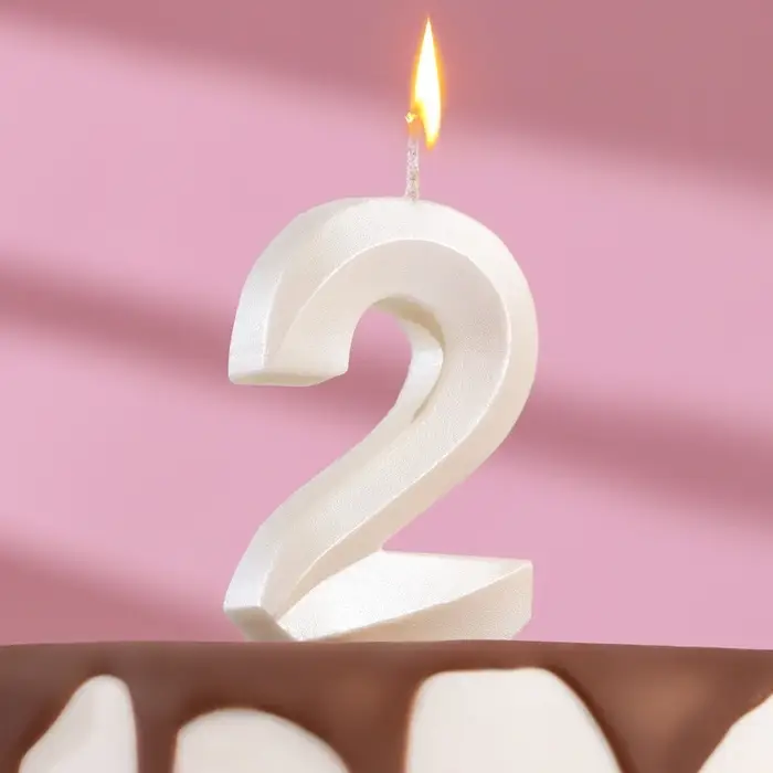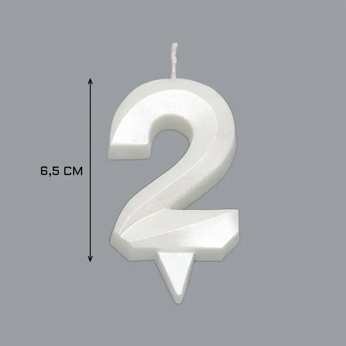 Свеча в торт «Грань», цифра 2, жемчужный, 6.5 см