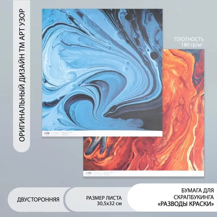 Бумага для скрапбукинга двусторонняя "Разводы краски" плотность 180 гр 30,5х32 см