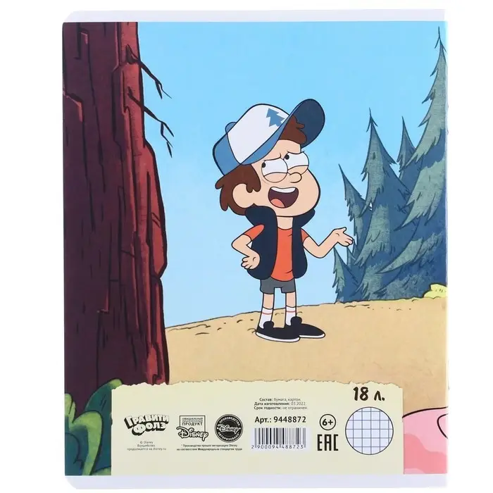 Тетрадь в клетку 18 листов, 5 видов МИКС, обложка мелованный картон, «Гравити Фолз»