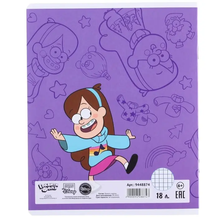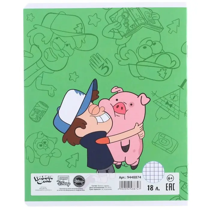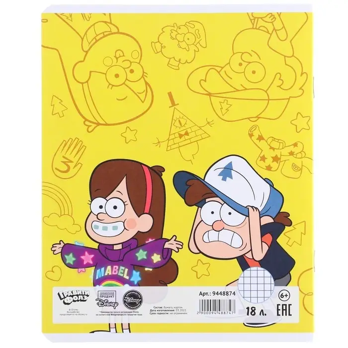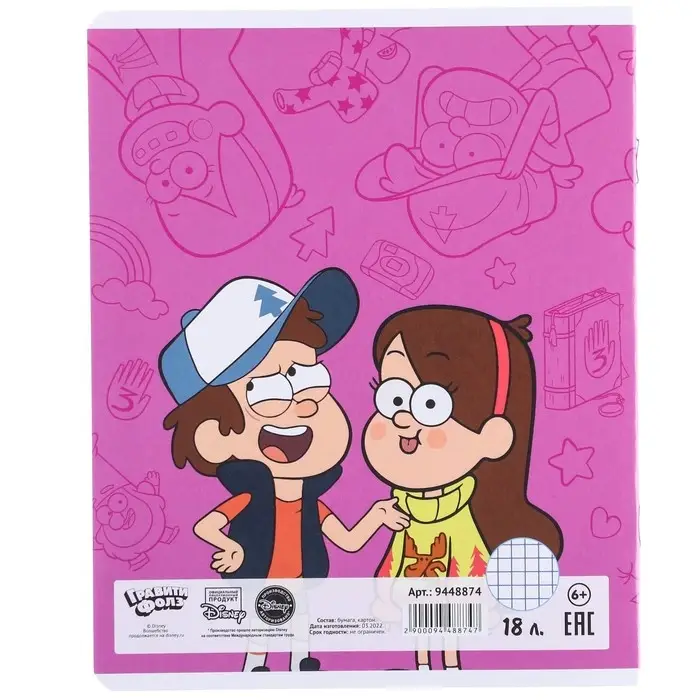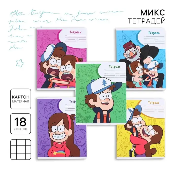 Тетрадь в клетку 18 листов, 5 видов МИКС, обложка мелованный картон, «Гравити Фолз»