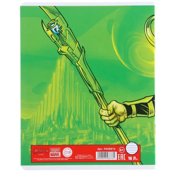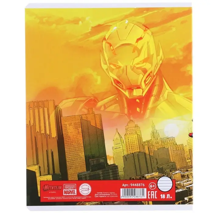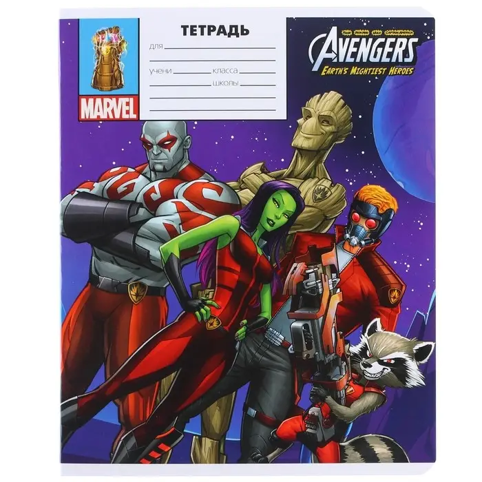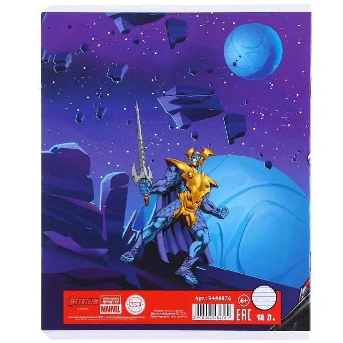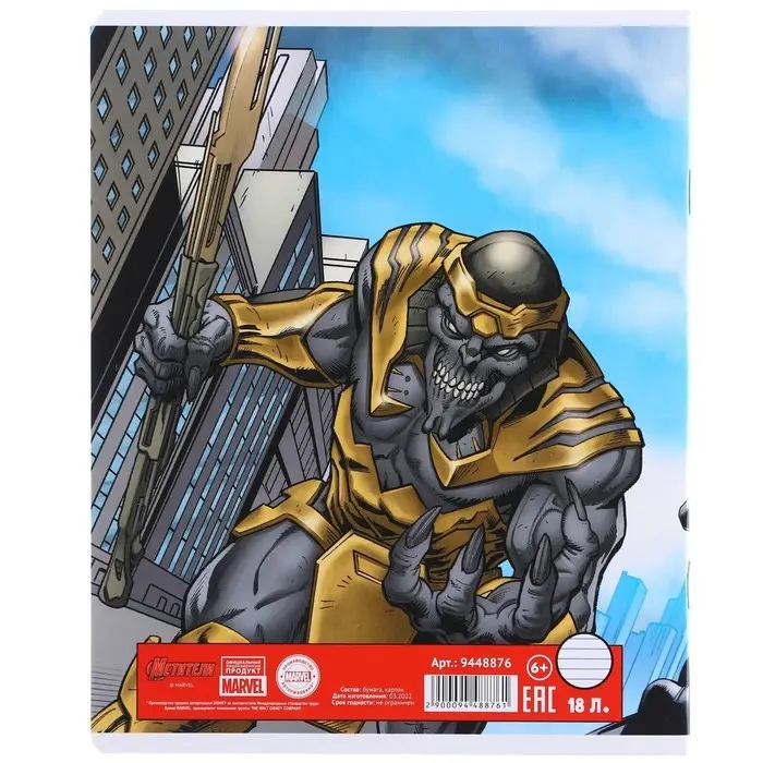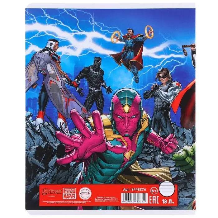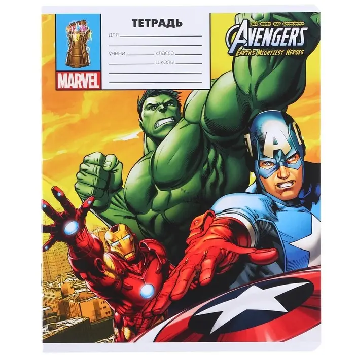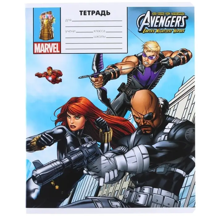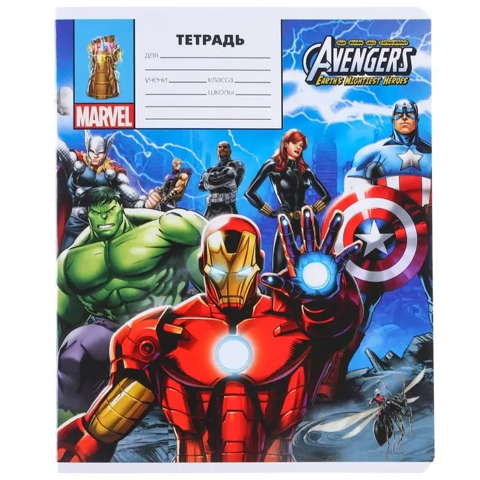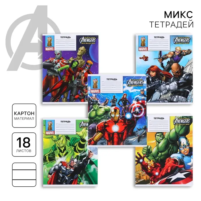 Тетрадь в линейку 18 листов, 5 видов МИКС, обложка мелованный картон, «Мстители»