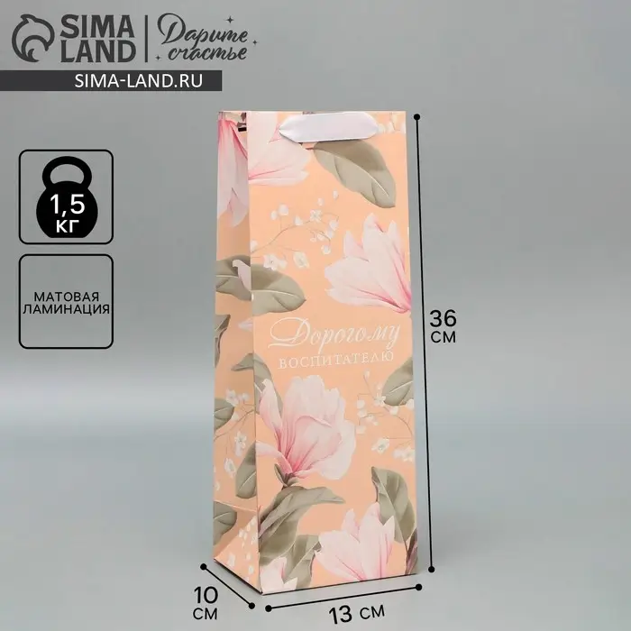 Пакет подарочный под бутылку, упаковка, «Воспитателю», 35 х 13 х 10 см