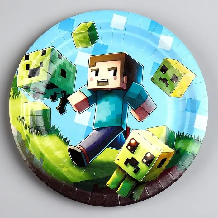Тарелка одноразовая бумажная «Пиксели», 18 см
