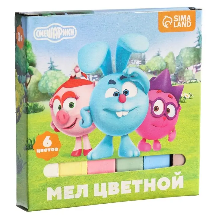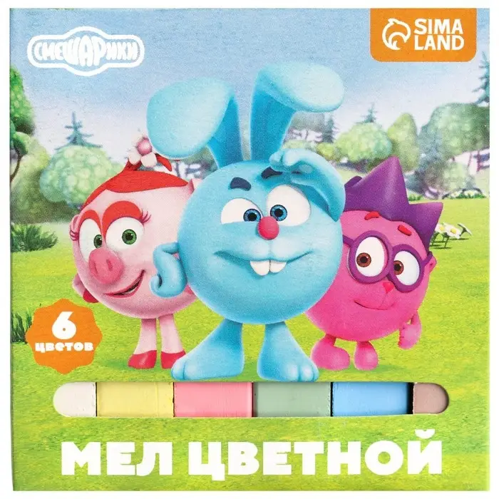 Мелки цветные школьные 6 шт. «Смешарики», прямоугольные