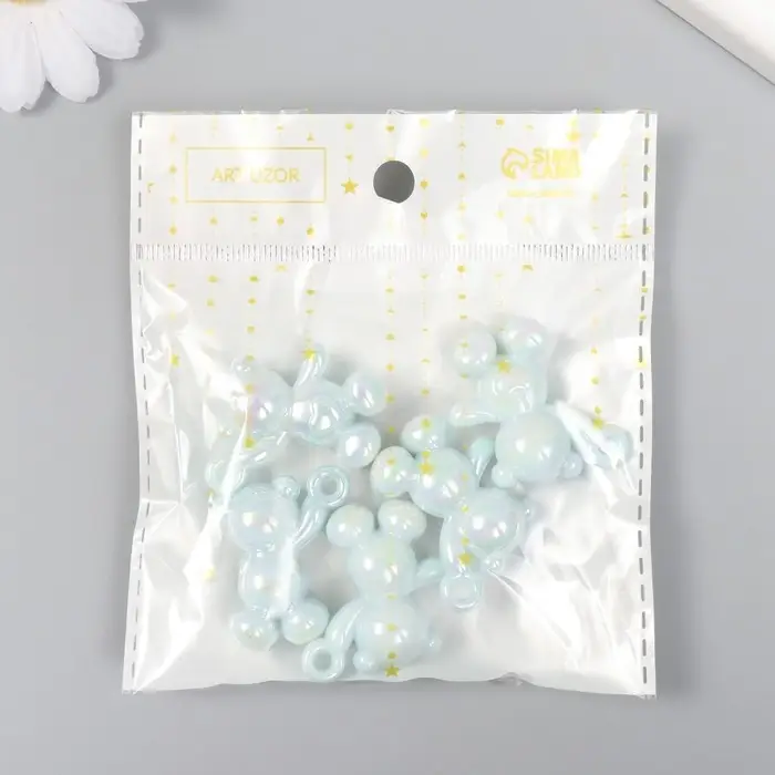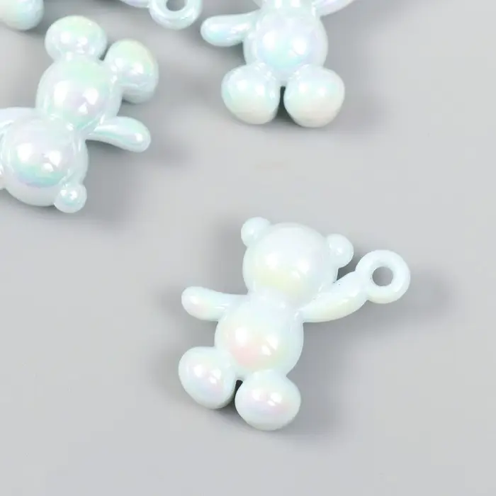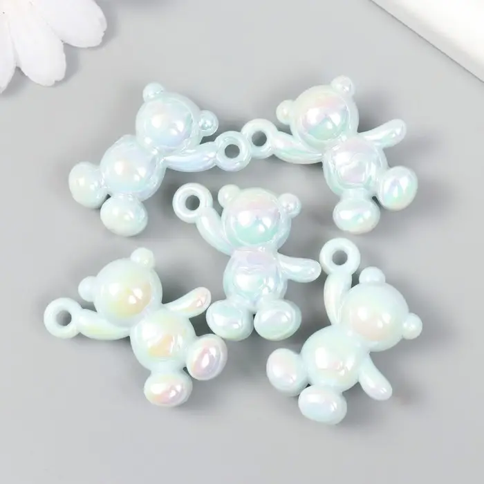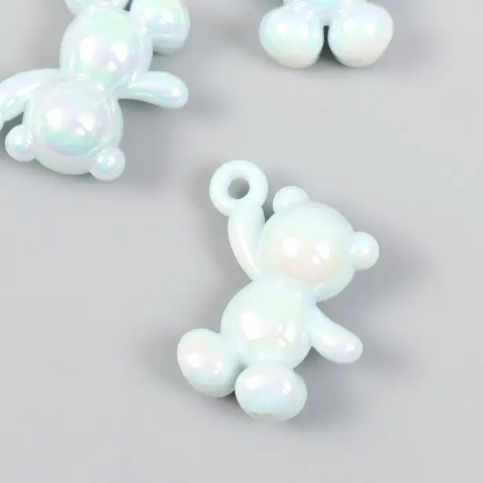 Декор для творчества пластик "Перламутровый мишка с петелькой" нежно-голубой 3х1,4х3,1 см