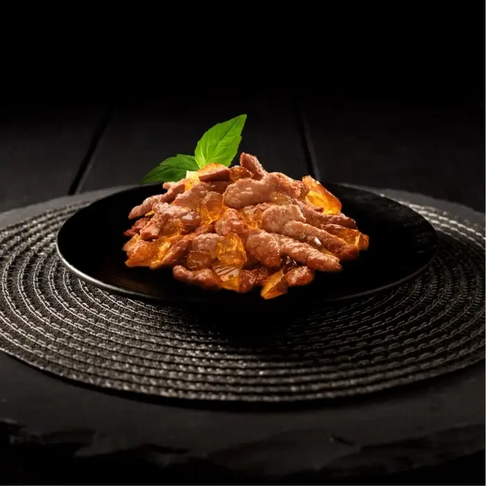 Сочные ломтики с курицей в ароматном желе - блюдо из высококачественных ингредиентов, которое придётся по вкусу самым притязательным кошкам. Мы приготовили его по особому рецепту, чтобы раскрыть всю красоту вкуса и сохранить баланс витаминов, минералов и аминокислот, необходимых вашей любимице.