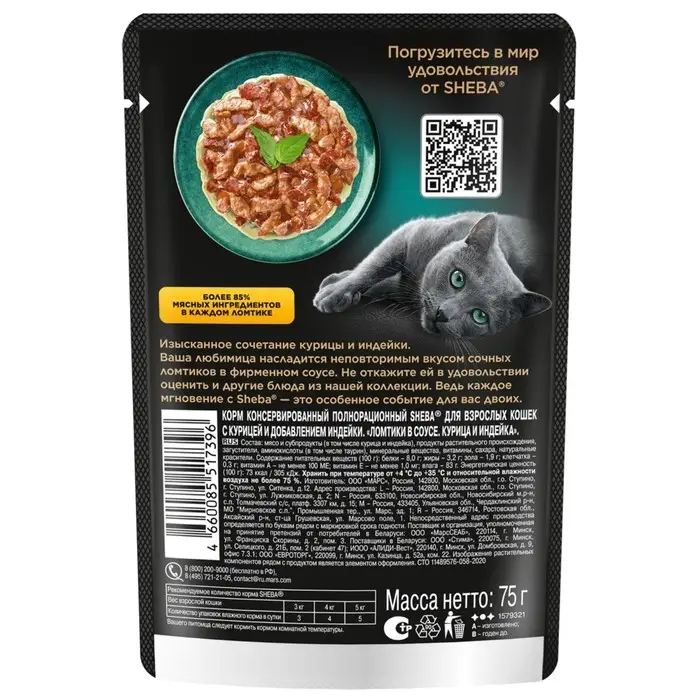 Влажный корм Sheba для кошек, курица/индейка, пауч, 75 г