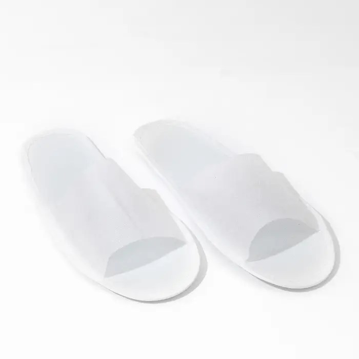 Одноразовые белые розовые с открытым мысом на нескользящей подошве имеют ровные швы и прошиты плотной ниткой. Союзка (верхний мыс) так же прошит с двух сторон, что значительно повышает прочность тапочка и обеспечивает длительное ношение без повреждений. Одноразовую обувь очень удобно взять с собой в дорогу или предложить гостям.