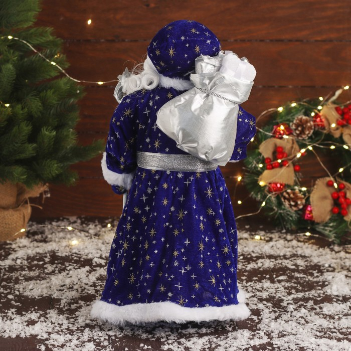 Дед Мороз "В синей подпоясанной шубе, с посохом и подарками" 45х23 см