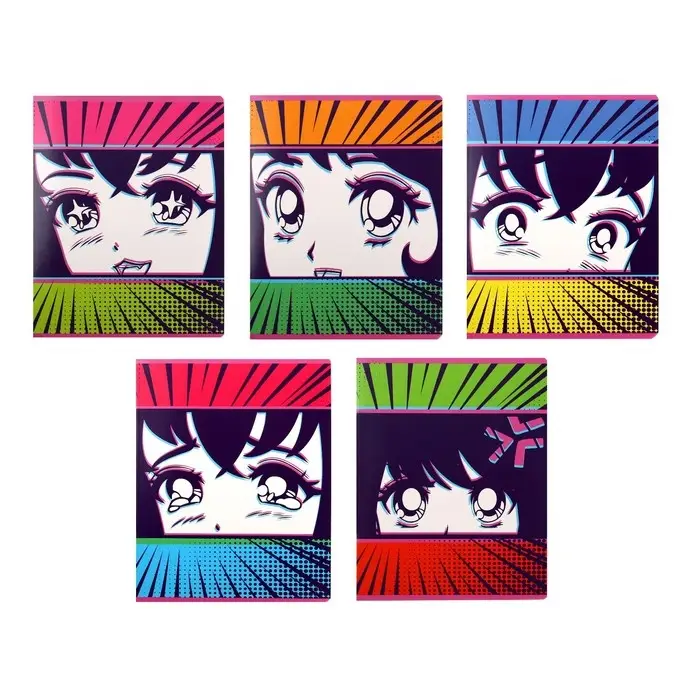 Тетрадь 48 листов в клетку «Аниме глаза», обложка мелованный картон, серые листы