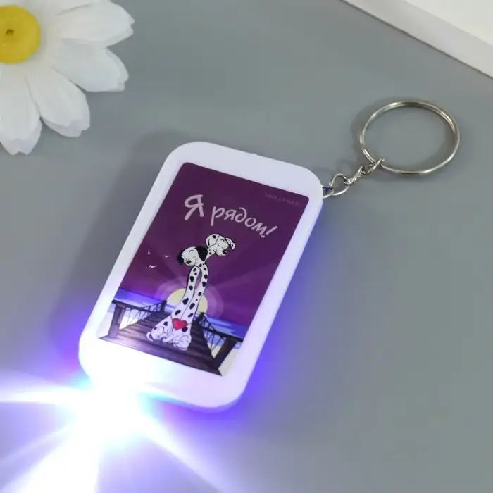 Фонарик брелок для ключей на кольце «Пёсики-далматинцы: Я рядом!», 6.5×3.5×1 см, МИКС