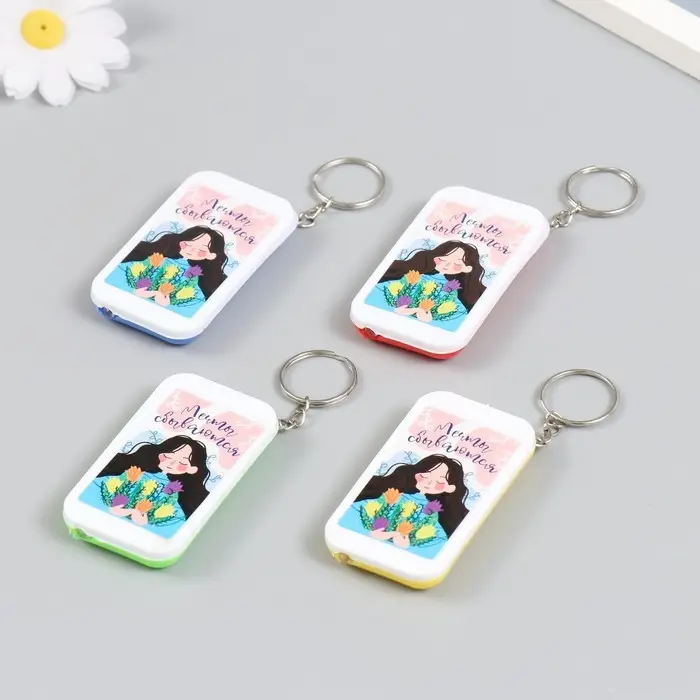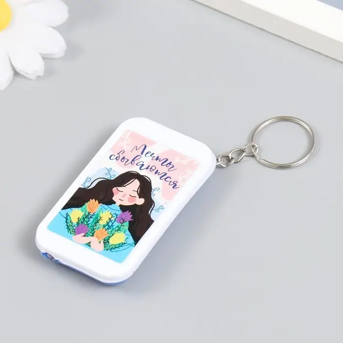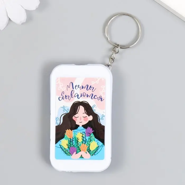 Фонарик брелок для ключей на кольце «Девочка с тюльпанами: Мечты сбываются», 6.5×3.5×1 см, МИКС