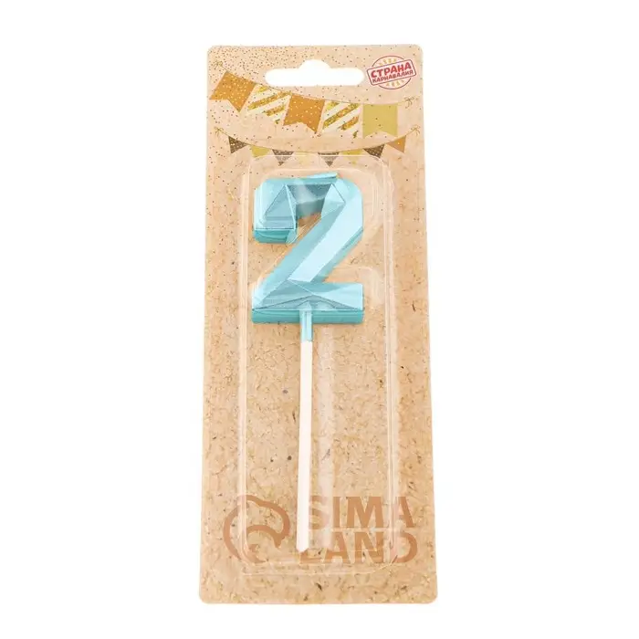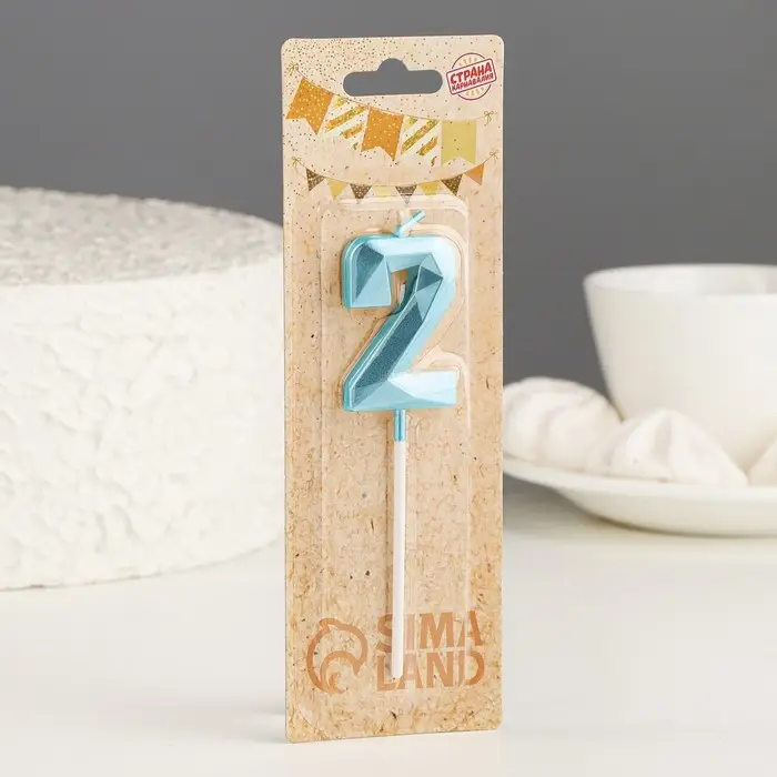 Свеча в торт на шпажке «Алмаз», цифра 2, голубая, 5 см