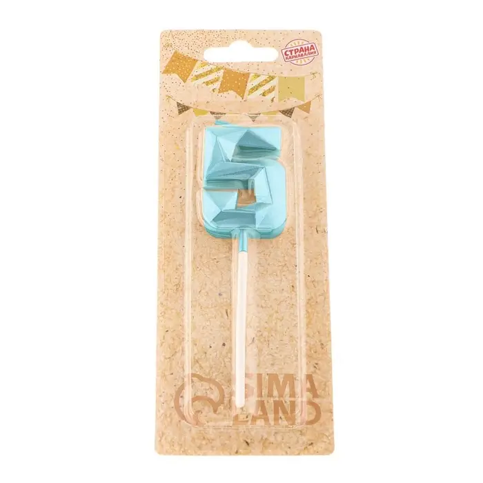 Свеча в торт на шпажке «Алмаз», цифра 5, голубая, 5 см