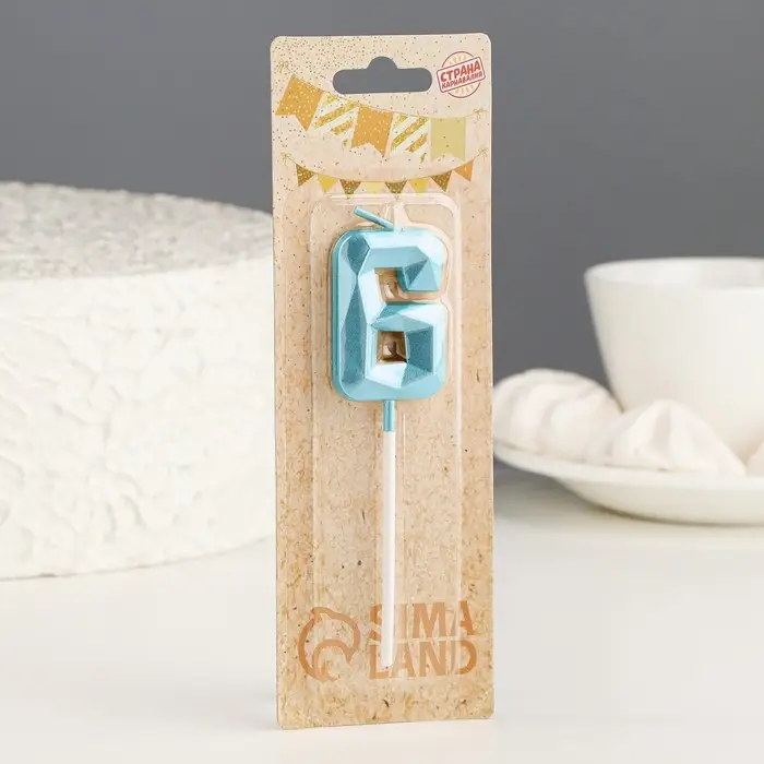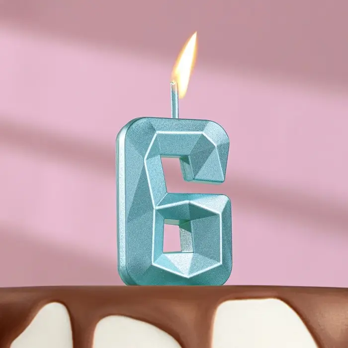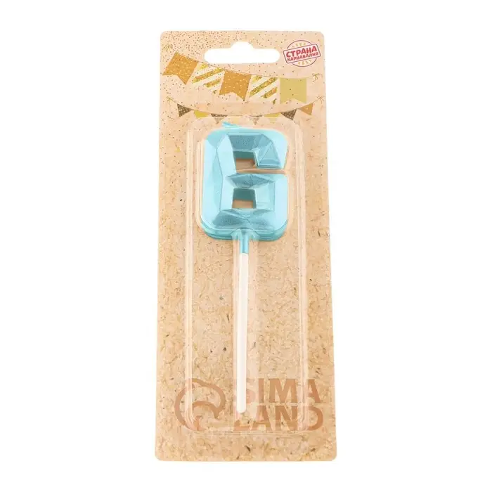Свеча в торт на шпажке «Алмаз», цифра 6, голубая, 5 см