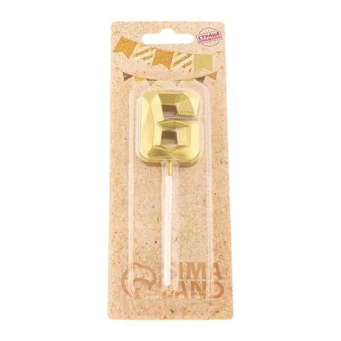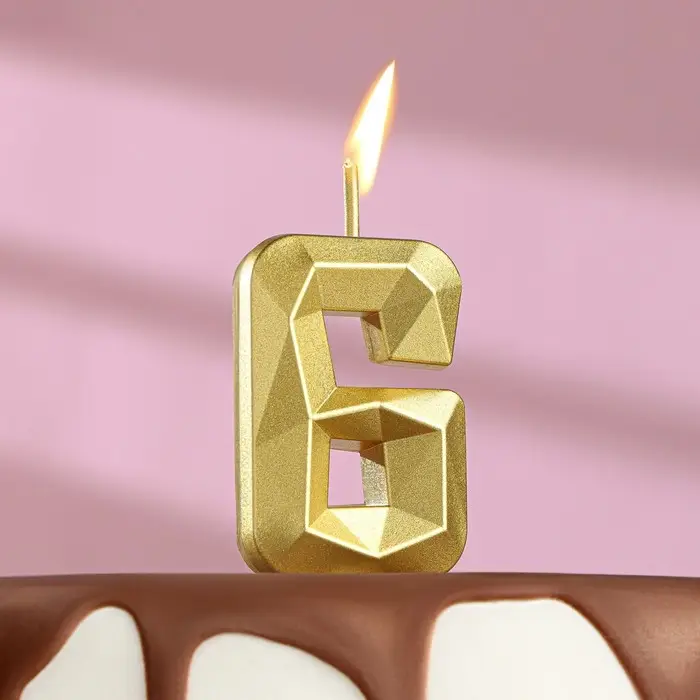 Свеча в торт на шпажке «Алмаз», цифра 6, золотая, 5 см