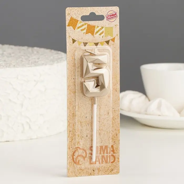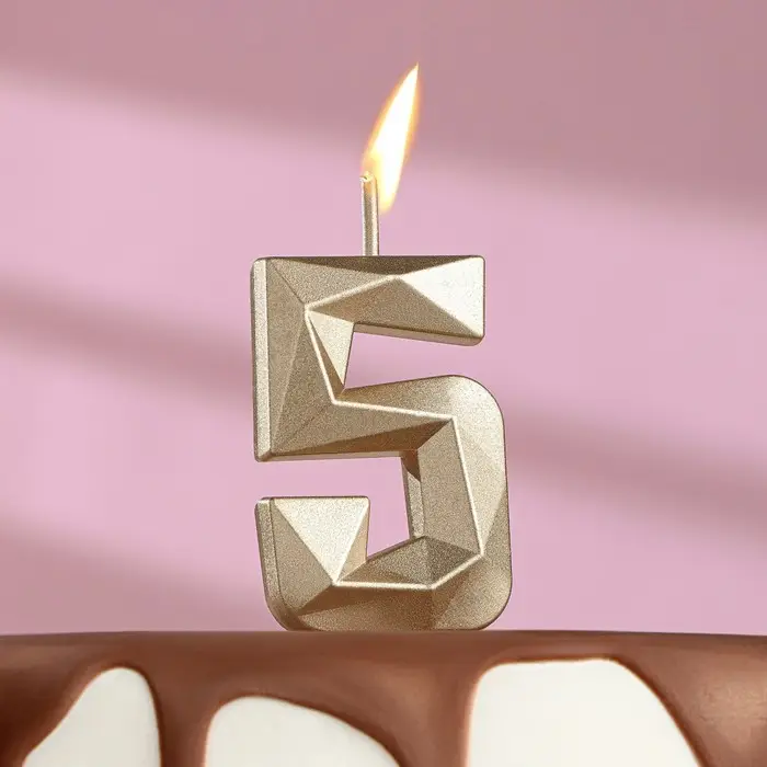 Свеча в торт на шпажке «Алмаз», цифра 5, шампань, 5×2.6 см