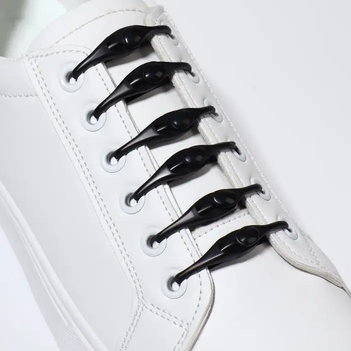 Набор шнурков для обуви, 6 шт., силиконовые, полукруглые, на застёжке, 4 мм, 11 см, чёрный