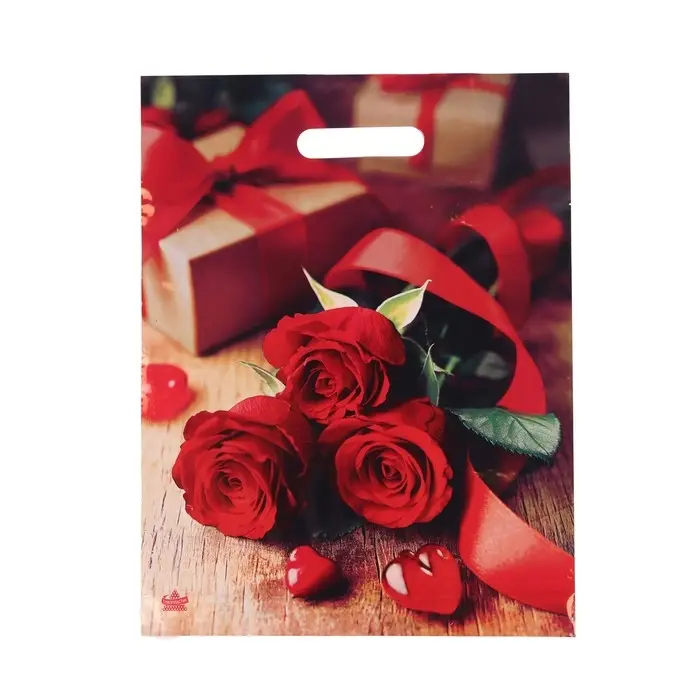 Пакет "Три красные розы" полиэтиленовый с вырубной ручкой, 31х40 см, 60 мкм