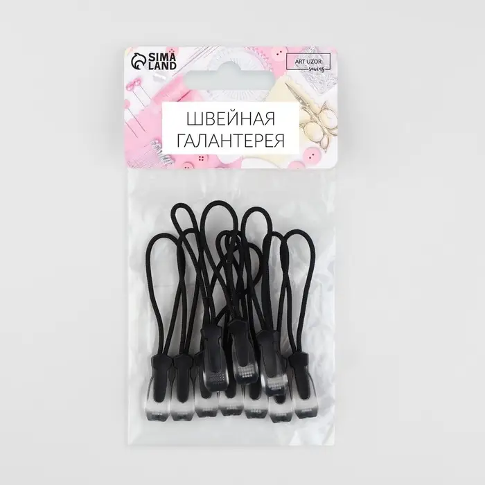 Пуллер для молнии, 2.3 см, 6×0.7 см, 10 шт., чёрный, прозрачный