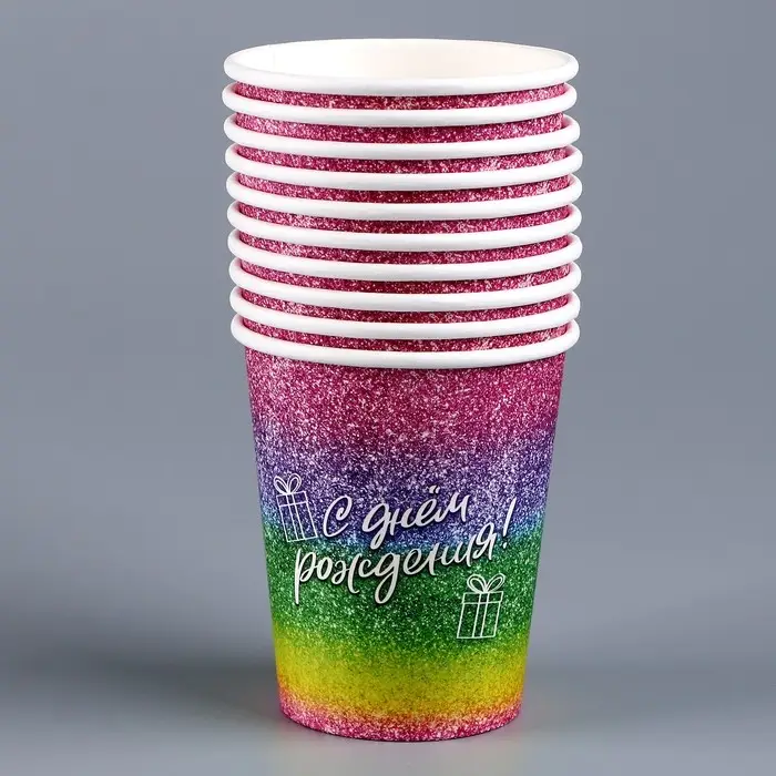 Стакан одноразовый бумажный «С Днём Рождения», 250 мл