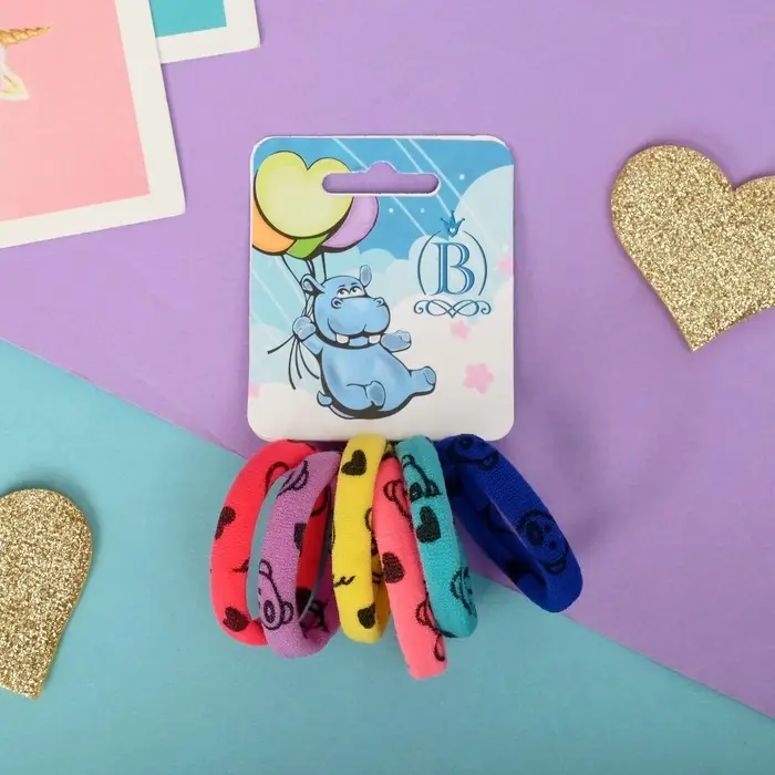 Резинка для волос "Радуга" (набор 6 шт) мишка, микс