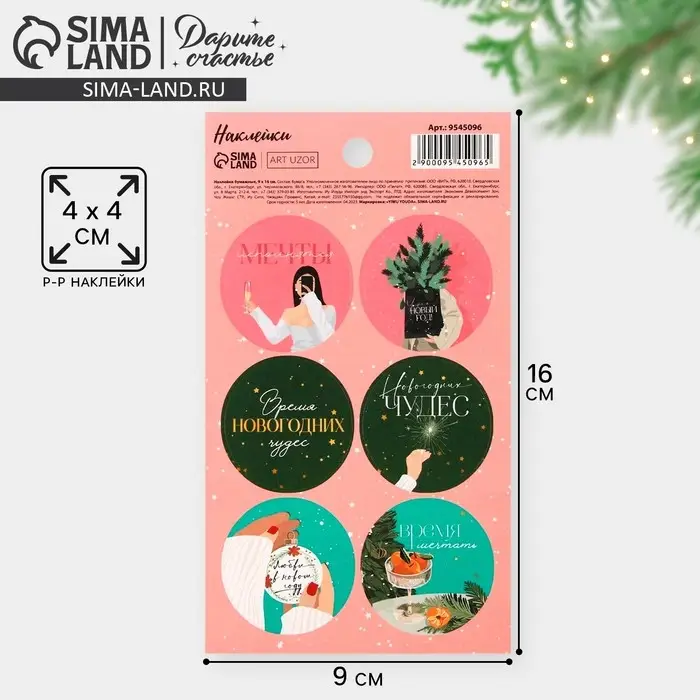 Наклейки новогодние бумажные «Время мечтать», на подарки, 9 х 16 см