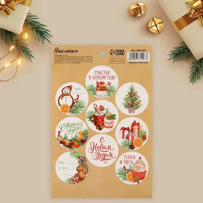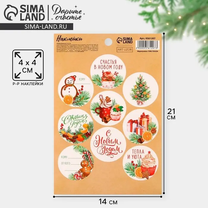 Наклейки новогодние бумажные «Счастья в Новом году», на подарки, 14 х 21 см
