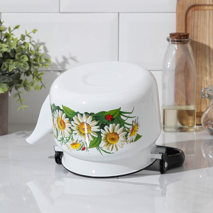 Чайник со свистком «Луговые цветы», 3 л, фиксированная ручка, цвет бежевый, индукция