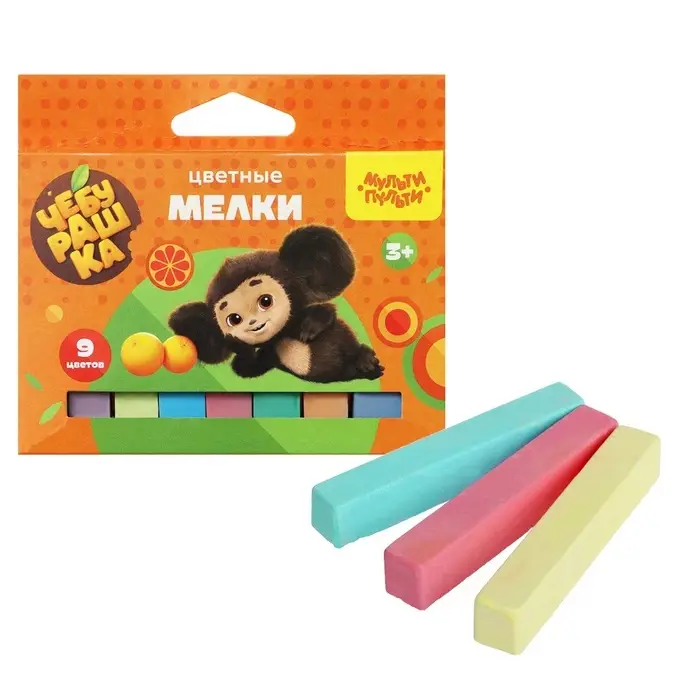 Мелки цветные Мульти-Пульти "Чебурашка", 9 цветов, картонная коробка, европодвес