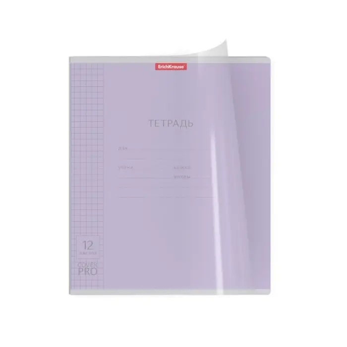 Тетрадь 12 листов, ErichKrause «Классика CoverPrо», в клетку, пластиковая обложка, блок офсет, 100% белизна, МИКС