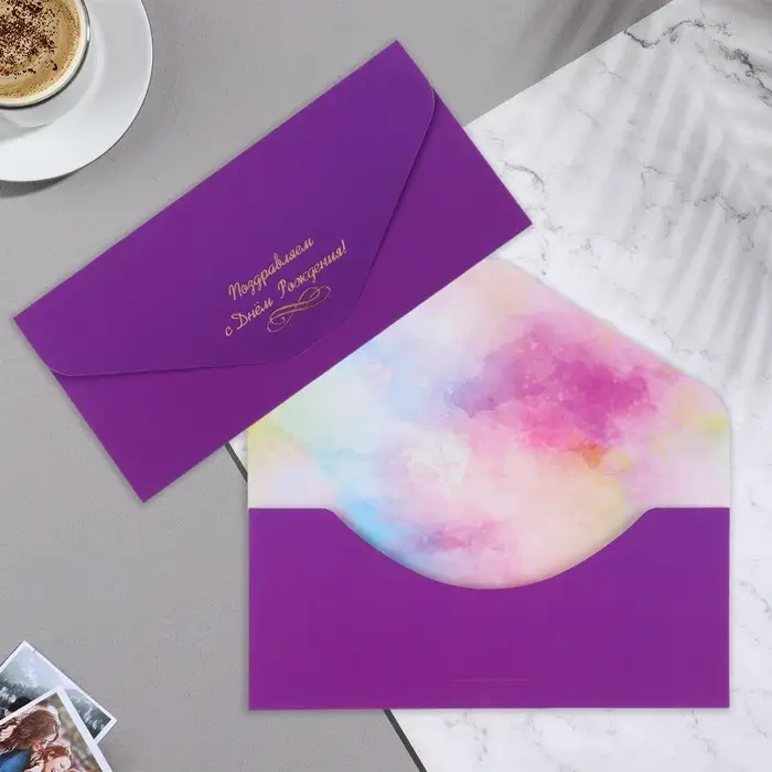 Конверт для денег «Поздравляем с Днем рождения!» софт тач, тиснение, 9×19 с