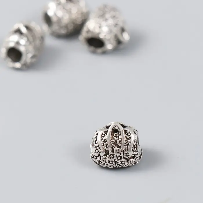 Бусина для творчества металл "Цветочная сумочка" серебро 1,2х1,1 см