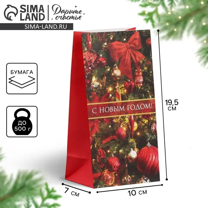 Пакет подарочный без ручек «С НОВЫМ ГОДОМ!», 10×19.5×7 см