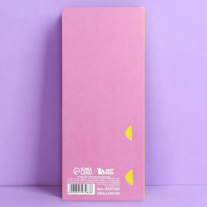 Открытка с местом под шоколадку, станет прекрасным подарком к празднику. Яркий дизайн, удобный формат и приятные эмоции обеспечены своему получателю.
