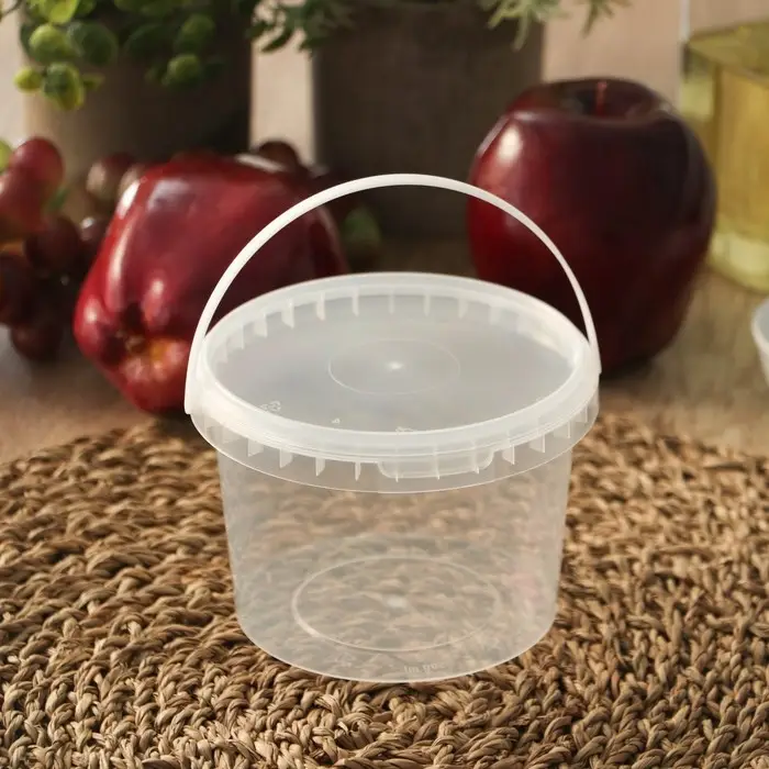 Маленькие прозрачные пластиковые ведра с крышкой (500 мл)