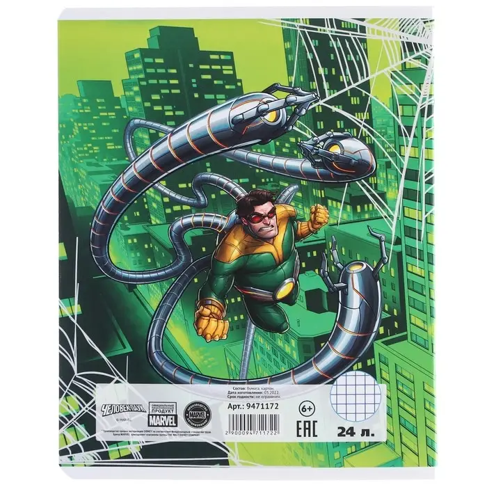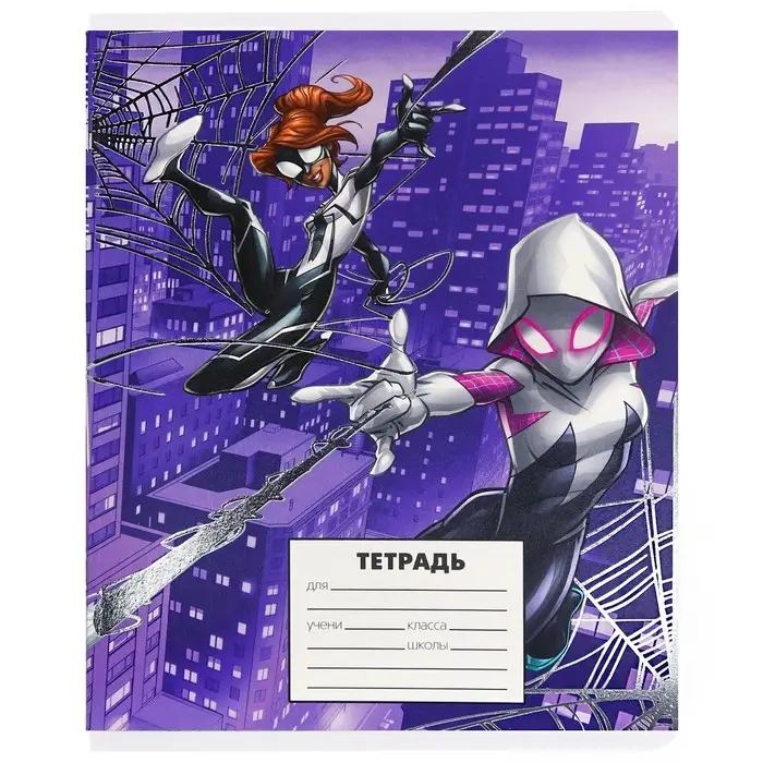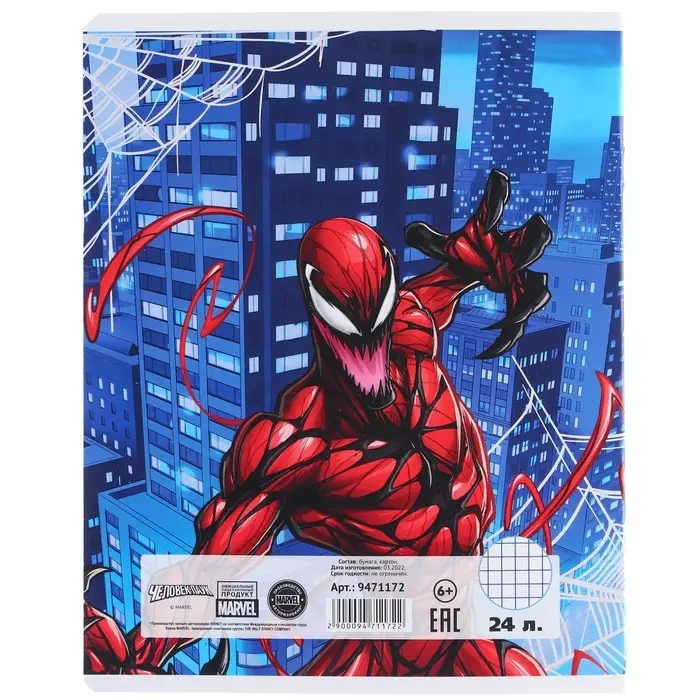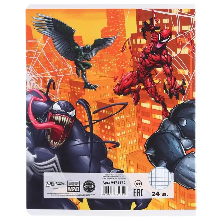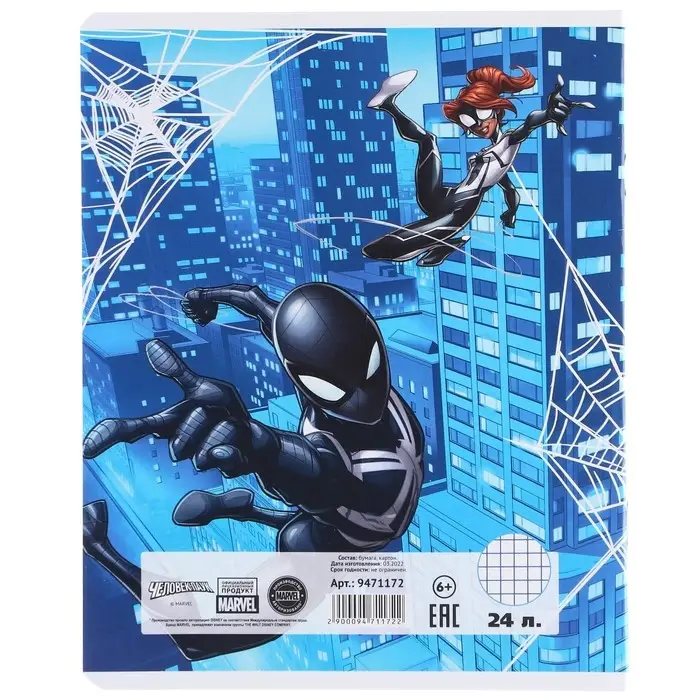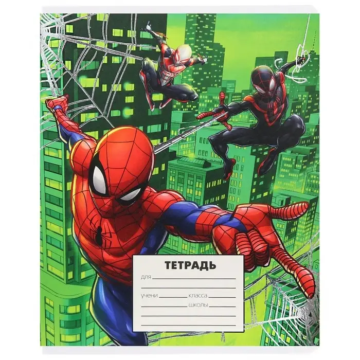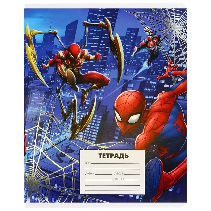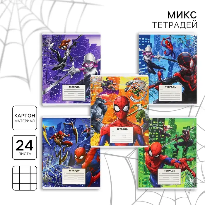Тетрадь в клетку 24 листа, 5 видов МИКС, тиснение, обложка мелованный картон, «Человек-паук»