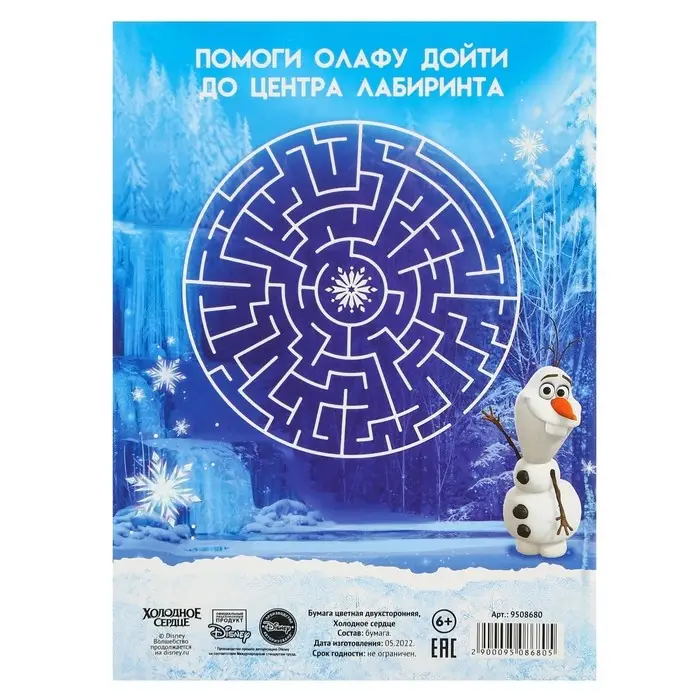 Цветная бумага, А4, 16 листов, 16 цветов, немелованная, двусторонняя, на скрепке, 48 г/м², «Холодное сердце»