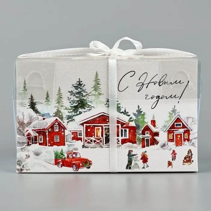 Коробка для капкейка «С Новым годом», зимний отдых, 16 х 8 х 10 см