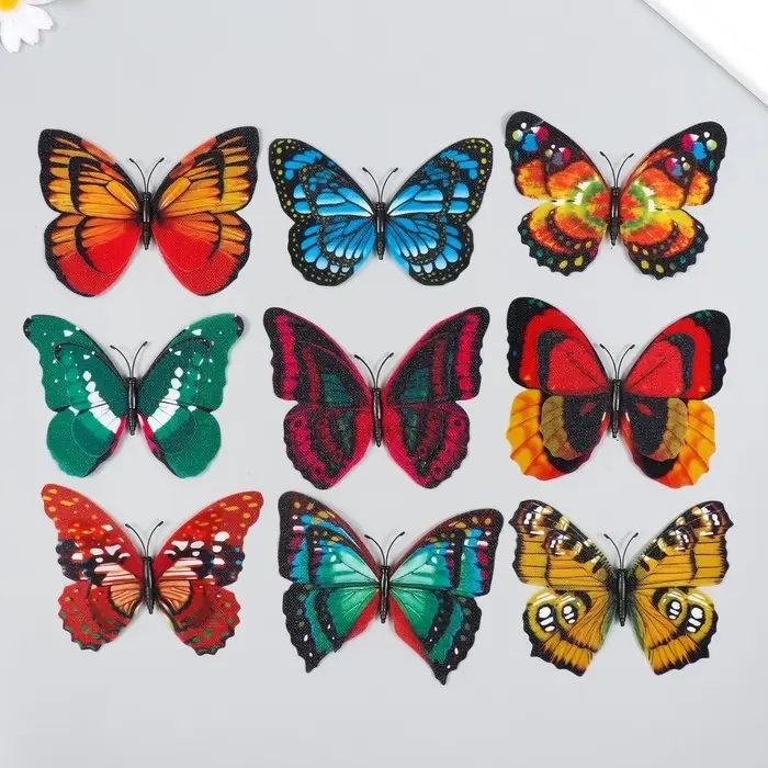 Магнит пластик "Бабочка двойные крылья" под текстиль блеск МИКС 8,5х12 см