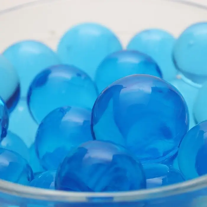 - Эстетика и практичность: Синие шарики выглядят как стеклянные бусины, но обладают полезными свойствами гидрогеля. Подходят для прозрачных ваз, флорариумов и детских экспериментов. Меняют цвет при высыхании, сигнализируя о необходимости полива.