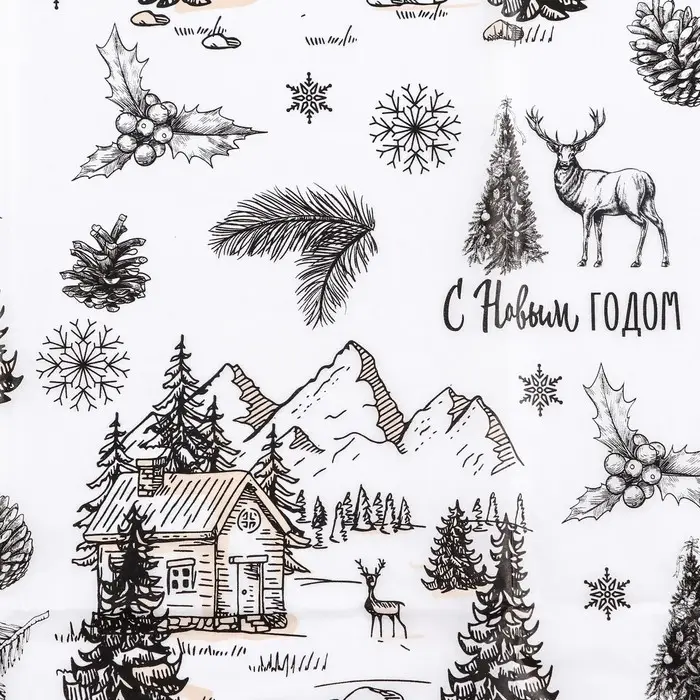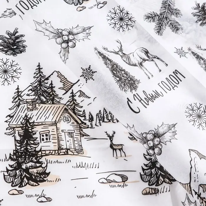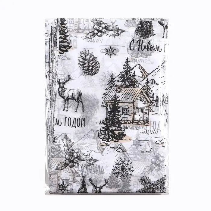 Бумага упаковочная тишью, новогодняя упаковка «Олени в лесу»,50×66 см