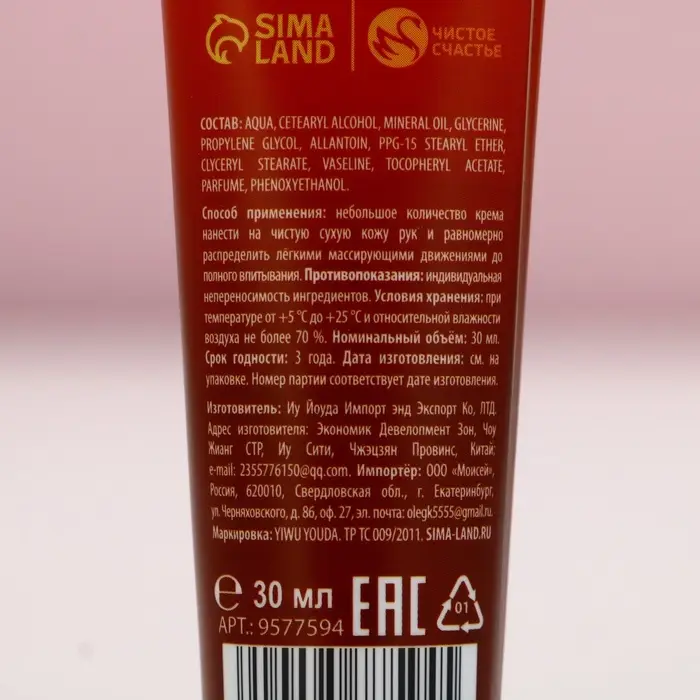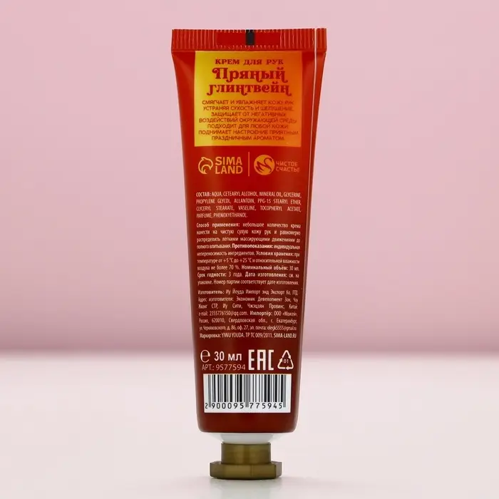 Крем для рук новогодний, 30 мл, аромат пряного глинтвейна, Чистое счастье