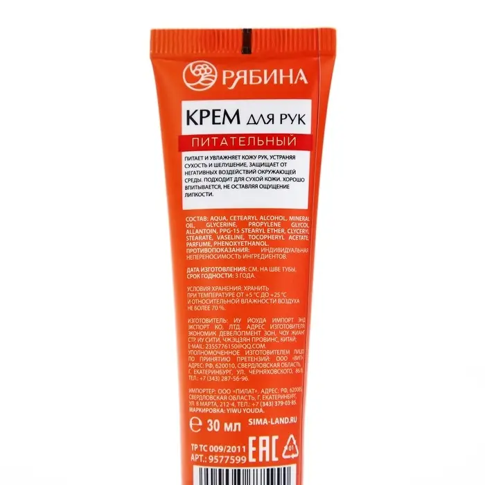 Крем для рук, питание, 30 мл, аромат алой рябины, Рябина