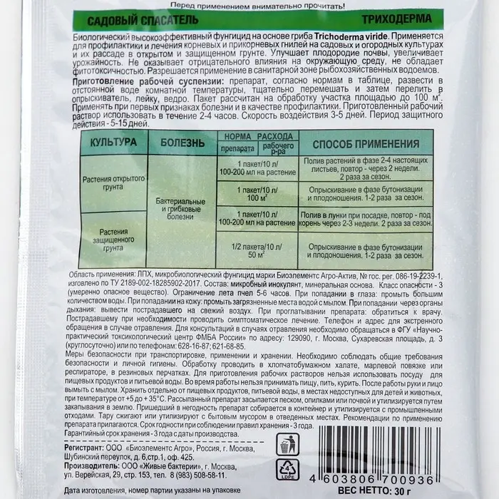 Биологический высокоэффективный фунгицид на основе гриба Trichoderma viride.