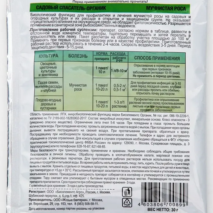 БИО фунгицид «Садовый спасатель», от болезней растений Мучнистая роса, 30 г