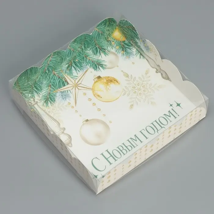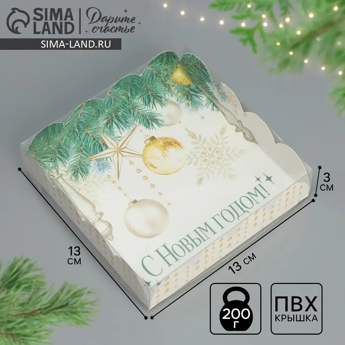 Коробка для кондитерских изделий с пластиковой крышкой «С Новым годом!», 13 х 13 х 3 см